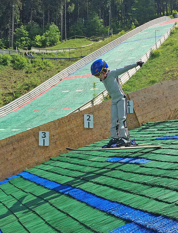 Das optimale Alter ist zwischen sieben und neun Jahren. Damit hast Du genug Zeit und kannst auf kleinen Schanzen anfangen und Dich dann immer weiter steigern. Vorraussetzung ist auch, dass du bereits Skifahren kannst.