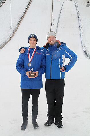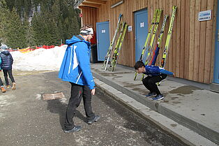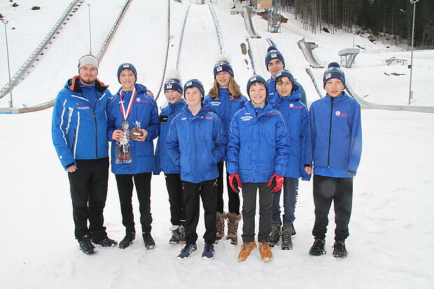 In der Schüler I-Klasse gelingt unserem Raphael Schmitz ein 54,5- und ein 53-Meter-Sprung, er wird damit Neunzehnter. Und unser Thomas Benedik springt 53 und 48 Meter, für ihn wird es Platz 29.