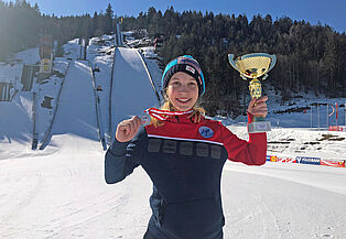 Bei den Mädchen holt Meghann Wadsak zuerst Silber und macht sich mit Sprüngen auf 59,5 und 57 Meter zur Vizemeisterin der Schülerinnen hinter Elisa Deubler vom WSV Bad Ischl. Im Teamspringen gemeinsam mit der Meidlingerin Sara Pokorny sind die beiden Mädchen aus Wien aber von keinem anderen Bundesland zu schlagen und holen zum ersten Mal Skisprung-Teamgold in die Bundeshauptstadt. „Sara und ich pushen uns im Training auch immer gegenseitig zu besseren Sprüngen. Dass ich mit Gold im Team und Silber in Einzel heimfahren darf, ist ein tolles Gefühl“, sagt Meghann Wasdak. Mit 58,5 und 59 Metern hat sie im Teambewerb auch die Höchstweiten in den beiden Durchgängen geholt.