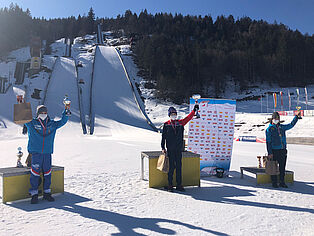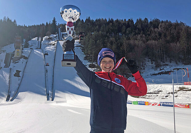 „Mir ist zwischen den zwei Durchgängen mein Schuhband beim Schnüren abgerissen und dann in der Hektik auch noch eine Schnalle am Sprungschuh kaputt geworden. Aber das war anscheinend ein Glücksbringer, weil wir das in letzter Sekunde noch hinbekommen haben und ich trotzdem voll konzentriert in die Spur gestiegen bin“, verrät Fabian Plank, der frischgebackene österreichische Schülermeister im Skispringen. „Meghann, Sara und ich haben natürlich gehofft, dass wir ganz vorne mitspringen können, wenn wirklich alles zusammenpasst. Aber dass es die Mädels im Team und ich vorher im Einzel echt geschafft haben, können wir gar nicht richtig fassen.“ Mit zwei Sprüngen auf jeweils 61 Meter gewinnt der 12-Jährige auf dem vierten Wiener Gemeindebezirk den Meistertitel in der Altersklasse Schüler I vor David Gruber vom SC Bischofshofen und Kenji Grossegger vom WSV Ramsau.