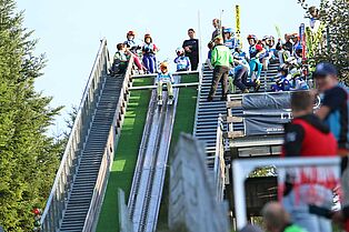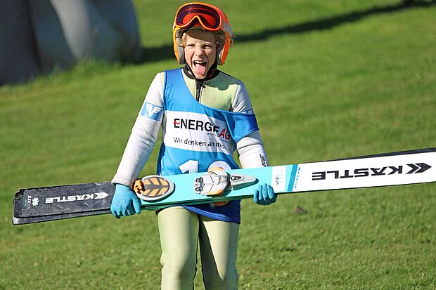 In die Top 20 springen in der jüngeren Altersklasse, also "Kinder II", auch Sandra Varga (9) aus Wien-Brigittenau und Elias Baswald, unser neunjähriger Stadtadler aus der niederösterreichischen Region Schwechat. Elias wird mit 16,0 und 16,5 am zweiten Tag Zwanzigster, am ersten Tag holt er mit 14,0 und 14,5 Metern Platz 21 genauso wie in der Nordischen Kombination. Sandra landet am ersten Tag bei 15,0 und 14,5 Metern auf Platz 20, am zweiten Tag bei 15,5 und 15,0 Metern auf Platz 21. In der Kombiwertung läuft sich ebenfalls in die Top 20.