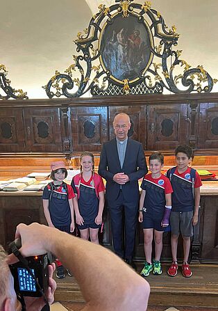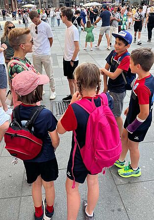 Wenn die Überflieger der Nation in Wien sind, dann ist natürlich ein Besuch im höchsten Kirchturm Österreichs Pflicht. Dompfarrer Toni Faber hat unsere Stadtadler Antonia, Siri, Malik und Paul als Touristenführer unterstützt, schließlich weiß kaum jemand mehr Geschichten über den Stephansdom als er. Und als dann alle gemeinsam festgestellt haben, dass der höchste der vier Stephansdom-Türme mit beeindruckenden 136 Meter sogar deutlich niedriger ist als jeder unserer Welcup-Stars schon gesprungen ist, waren sowohl der Dompfarrer als auch unsere Stadtadler als Touri-Guides beeindruckt.
