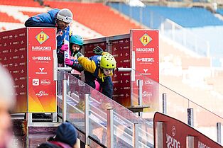 Und auch unsere Stadtadler-Trainerinnen und Trainer als auch Gastcoaches sind beeindruckt: "Schon sehr cool, was Ihr da macht. Und dass so viele Mädchen bei Euch abheben, freut mich ganz besonders", meint etwa Daniela Iraschko-Stolz, die Skisprung-Pionierin, die ebenfalls einen Tag im Ernst Happel-Stadion mitgeholfen hat. Auch ihre Tiroler Trainerkollegin Mani Cooper, die oberösterreichische Kaderathletin Sophie Kothbauer, Ski Austria-Nachwuchs-Projektleiter Mike Grubinger und natürlich unsere Stadtadler-Coaches Denise Frühauf, Jonas Gritsch, Mario Innauer, Michael Schiller, Philipp & Thomas Wadsak und Paul Weindl haben die Kinder bei ihren ersten Skisprung-Versuchen begleitet.