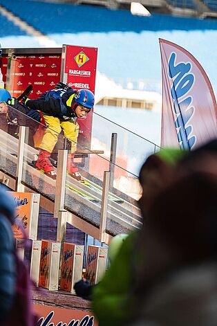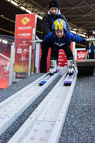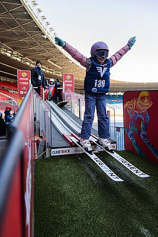 Noch nie wollten so viele Kinder in Wien Skispringen ausprobieren wie in diesem Winter: Mehr als 400 Mädchen und Burschen sind bei unserem Stadtadler-Schnuppertraining im ehrwürdigen Ernst Happel-Stadion abgehoben. An den beiden Jänner-Wochenenden zwischen Vierschanzentournee und Skiflug-WM haben wir für alle Kinder zwischen sechs und neun Jahren, die schon Skifahren können, eine Minischanze im größten Stadion Österreichs aufgebaut. Das Ergebnis waren hunderte strahlende Kinderaugen.